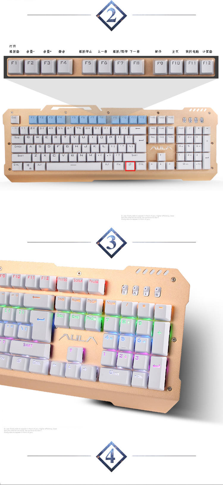 タランチュラ(AULA)F 20008メカルボルド有線キーボードゲームボックス104キーバーライトハイブリッドコンピュータキーボード土豪金青軸自営