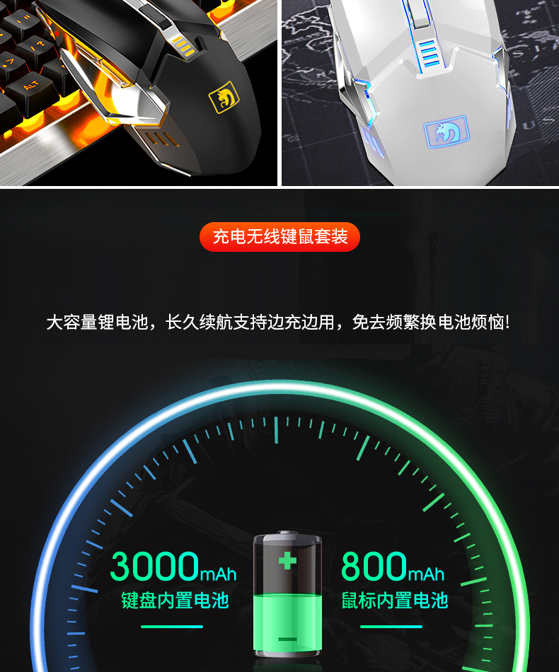 Technology(Technology)マンバ蛇充電式ワイヤレスキーボンドマウスセットキーマウスノートパソコンデスクトップゲーム専用競合マシン手触り金属灰橙光
