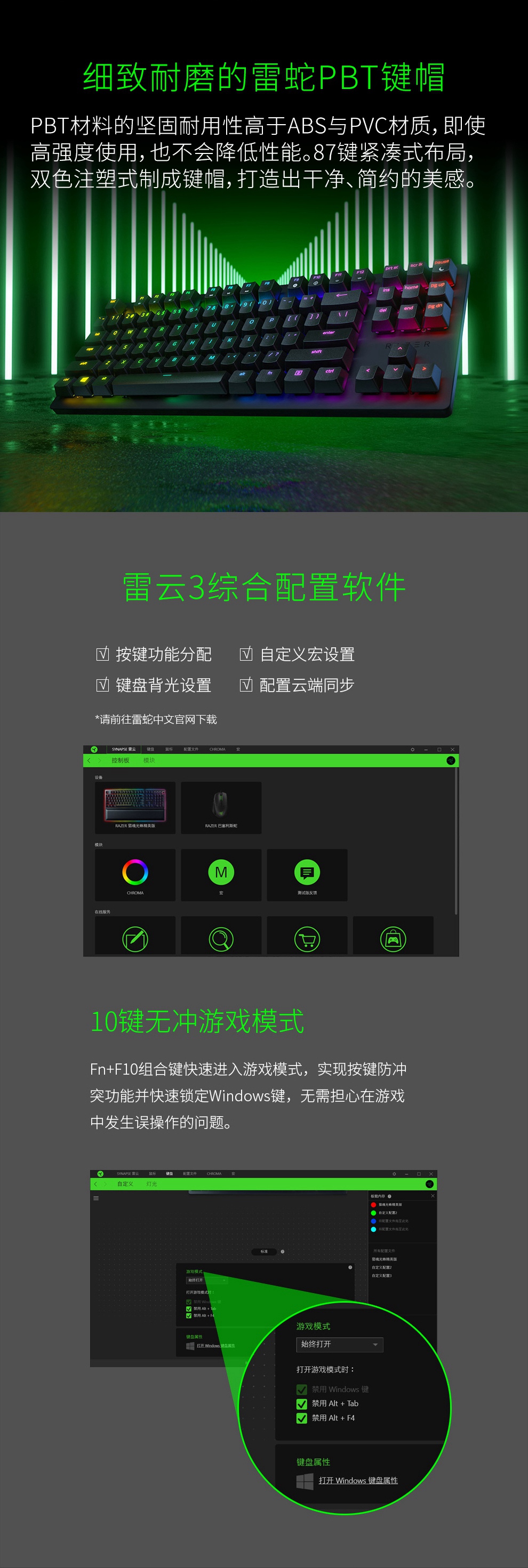 RAZER(RAZER)猟魂光クモHuntsman多彩机械ゲームセンターミッキーボンド光軸(黒寡婦光軸版多色雷雲3)竞技版-87鍵盤(リニア光軸)