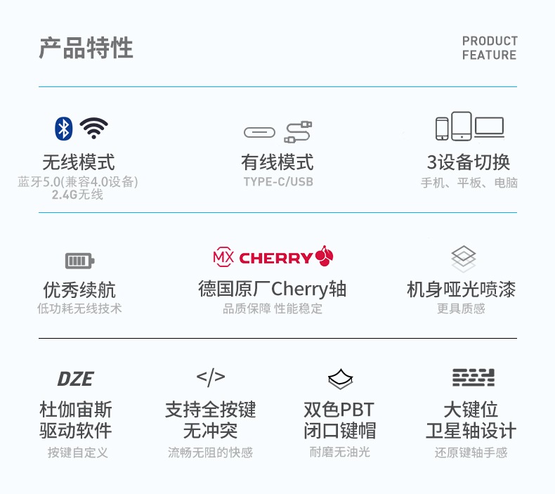 DURGOD Duka K 320 W 87鍵盤ワイヤレスブルートゥース三モード有線CHERRY軸メカニンカルキーボンド87鍵盤(電競ゲームミッキーノートパソコンオフィスキーボード)87鍵盤(深空灰)CHERRY赤軸