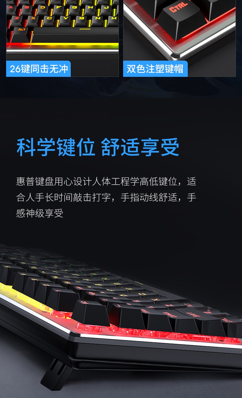 HP(HP)本当に機械的手触りキーボードマウスセットゲームケーブルバーライトがチキンノートパソコンの外に設置されているオフィス牧師キーマウスパンクネットカフェの三点セットK 500ホワイトカラー【復古版】