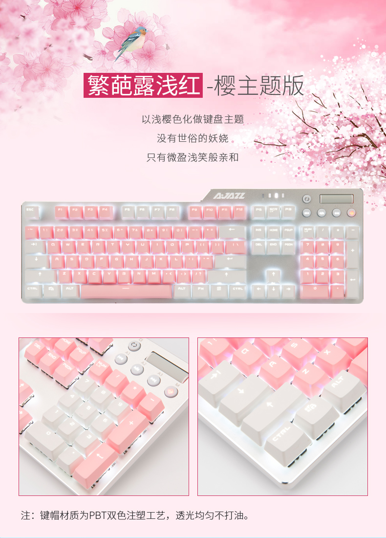 AJAZZ(AJAZZ)AK 35 i桜ピンクキーボードセットPCノートゲーム機械キーマウスセット(マクロ駆動キーマウス全押し無沖)赤軸-白粉ダブルスペル(ヘッドフォン3点セット)