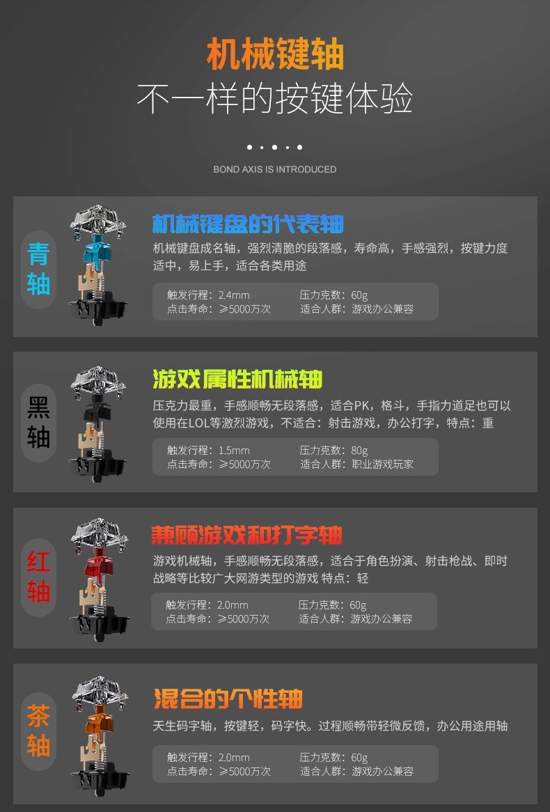 商品を受け取ってからもう十日以上使っています。感じを説明してください。私が買ったのは青軸です。タイプライターが好きなので、カチッと音がします。このキーボードのボタンは私の期待にぴったりです。叩いた時は力がなくて、音が澄んでいて、手触りもいいです。デザインの照明効果も選べます。両側にはLEDテープがあります。五色呼吸灯の効果は素晴らしいです。とにかく、これは素晴らしいキーボードです。