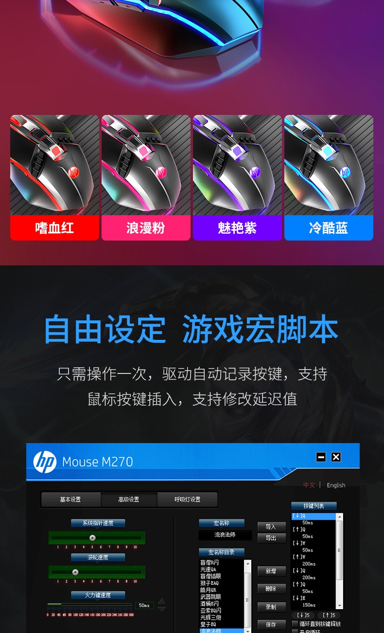 HP(HP)本当に機械的手触りキーボードマウスセットゲームケーブルバーライトがチキンノートパソコンの外付けオフィスキーマウスパンクネットカフェの三点セットK 500黒カラー光【復古版】+M 270マウス