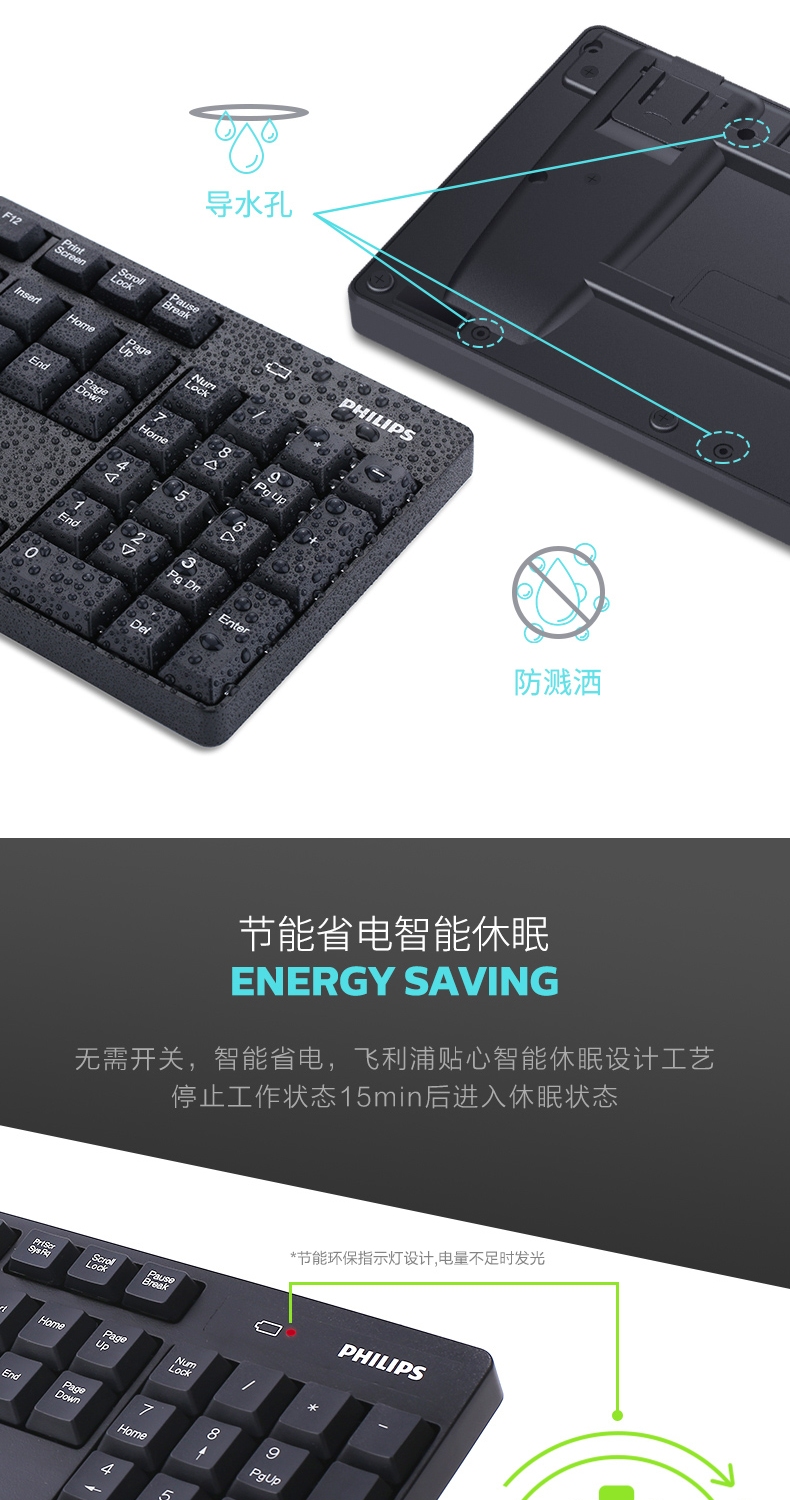 フィリップスPHILIPS SPT 6501 BSCマウスセット無線キーマウスセット執務ボタンマウスセットセット10メートル飛び込み防止静音充電黒
