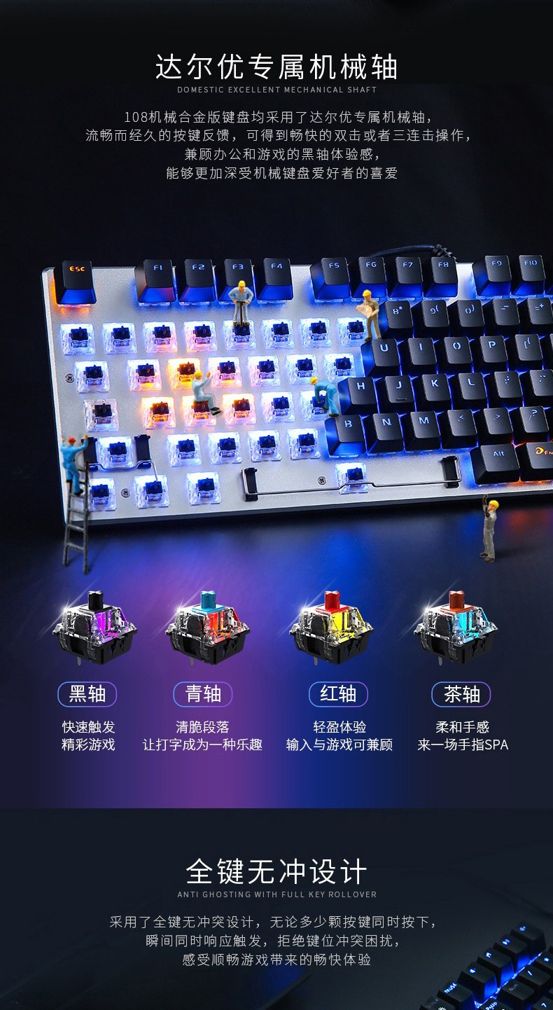 DAREUESK 815牧畜馬人2代メカルボマウスセットボタンネズミセット(有線ノートパソコンでは絶地に生を求めてチキン競合ネットカフェネットカフェカフェネットカフェでコーヒー)青白茶軸1代108鍵盤+牧馬人2代白色