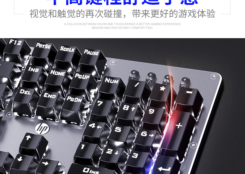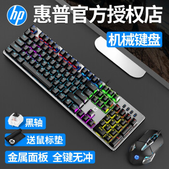 HP(HP)GK 100メカルニルキーボンバー専用チキンデスクトップノートパソコンオフィススーツ電競lol外装104キー全押し無沖金属灰(混光)黒軸+G 160マウス