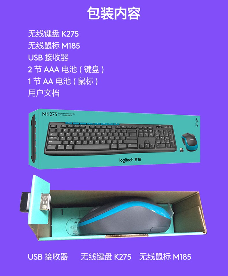 ロジク·ル(Logitech)MK 275キーセットマウスセットオフィスキーホルダーセット全サイズキーボードビジネス家庭用セットロジク·ルmk 275