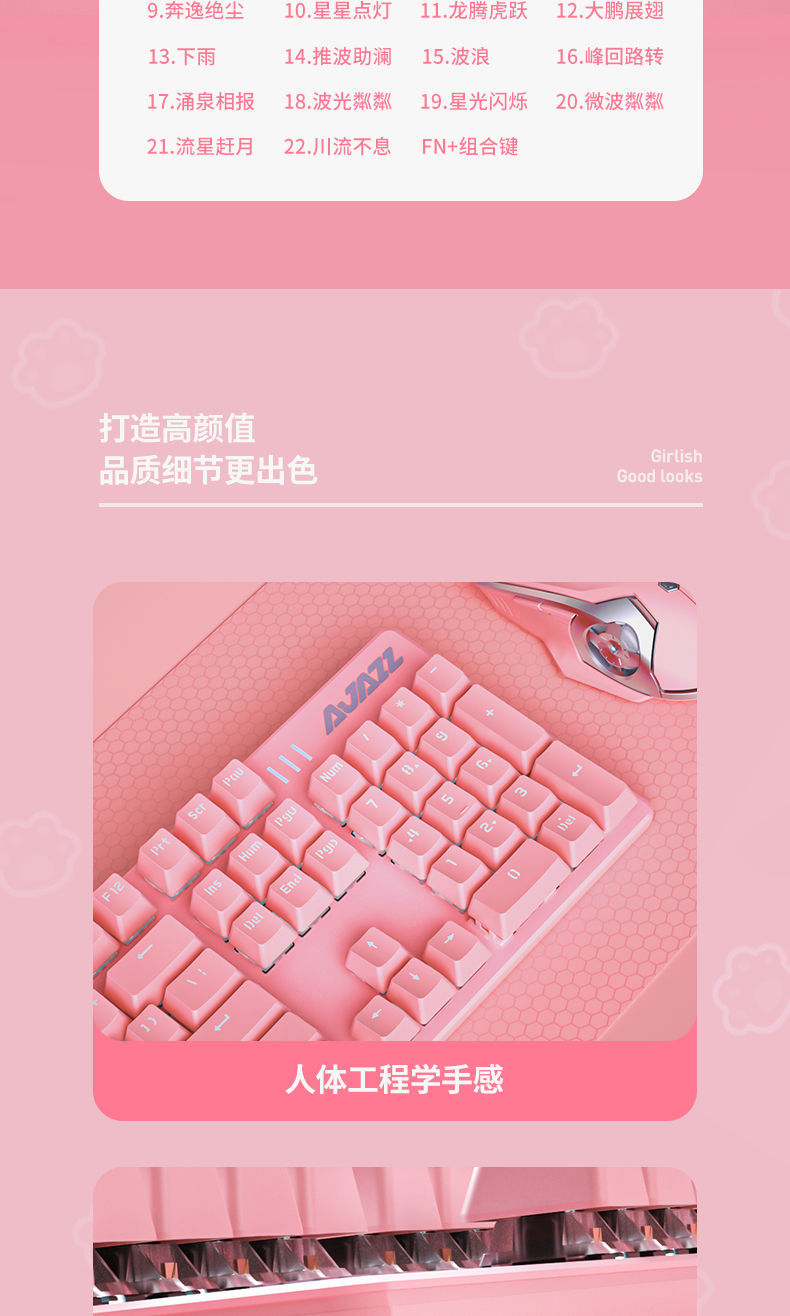 AJAZZ(AJAZZ)机械戦警メカルキアボンド少女心さくら粉有線キーボード104キーバーライトキーボード可爱いデスクトップノートパソコンピンク青軸