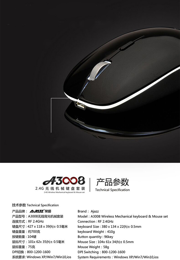 AJAZZ(AJAZZ)A 380黒青軸有線ワイヤレスメールボックスマウスセットゲームキーセット家庭用ノートパソコンデスクトップ充電ダブルマウスセット