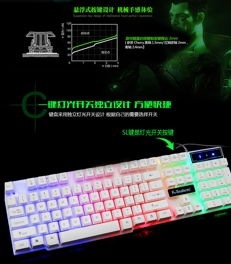 カラマイムシゲムベトLED付き机械の手触りキーボンドドドフードフードを食べます。家庭用ケ-ブルカルフの外にパソコンのノ-トUSBの外にマ-スを接続します。K 4黒の虹文字が光を透過します。