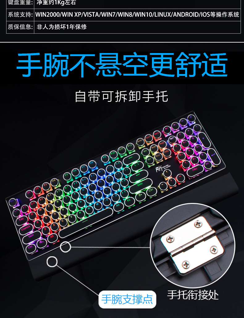 RK蒸气パンRGBバーライトゲーム復古メカニンボックス108ボタ黒金めの版