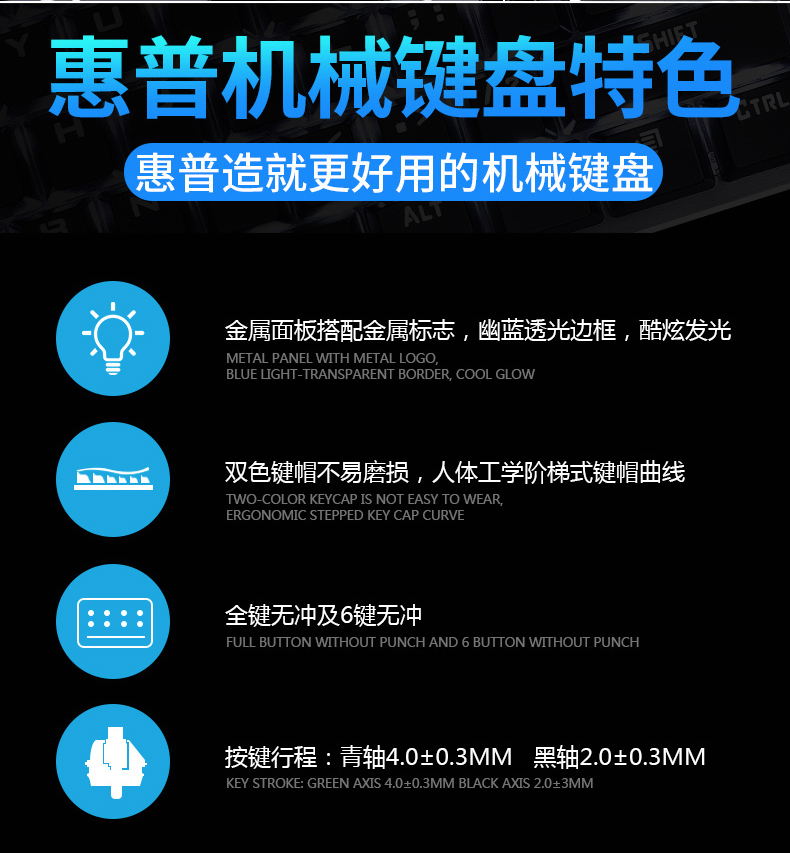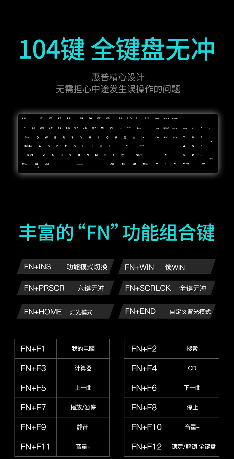 HP(HP)GK 100 104鍵盤メカニンボンド黒シャフト(ゲームオフィスキーボードバーラットキーボード)GK 100金属灰(エリアリミッティング)黒軸