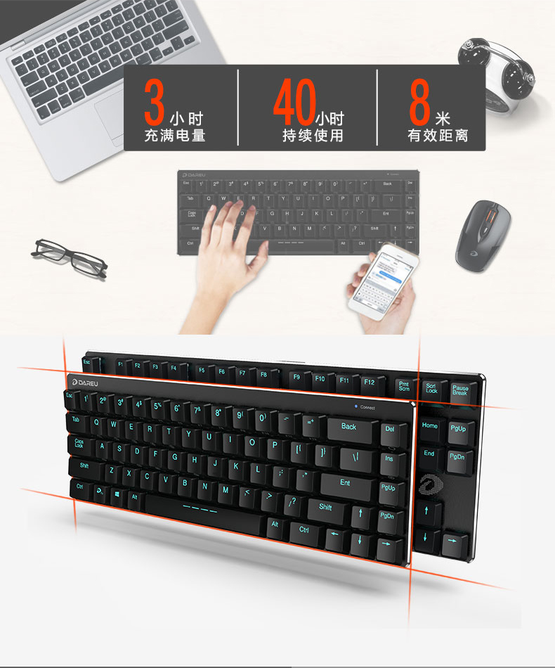 DAREU(dareu)EK 820 68鍵盤ゲームモングーボンドブルートゥースキーボードメカルボン