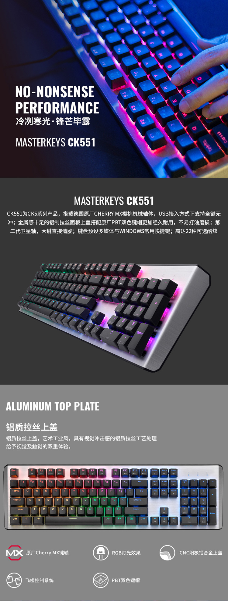 クールクールクールクール至高者(CoolerMaster)CK 551 RGBメカルドボンド(赤軸)CHERRY軸(Cherry軸/CNC上蓋/104キー/フルクリック/チキンキーボードを食べる)