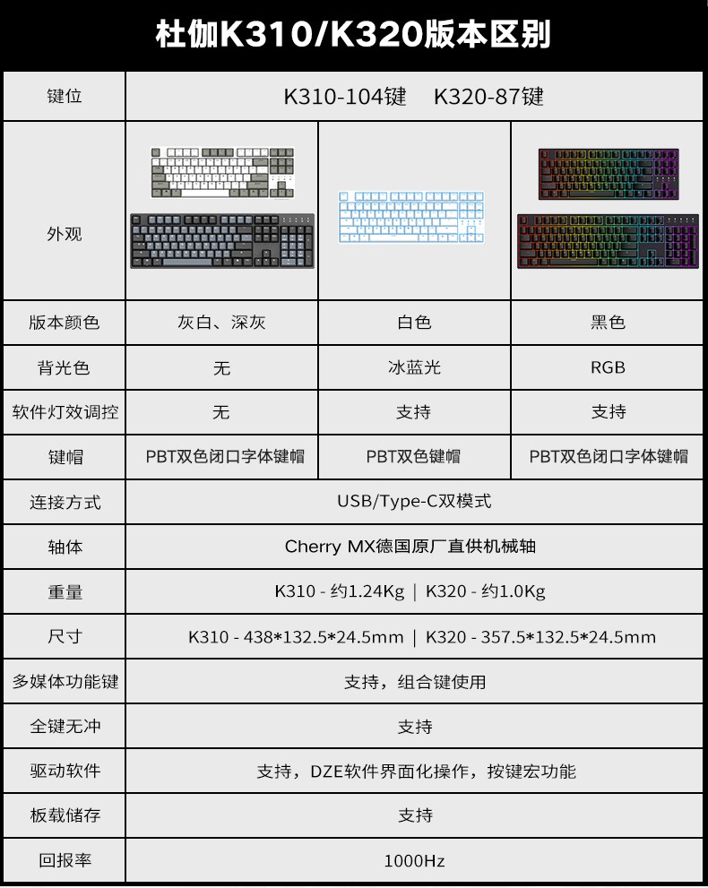 DURGOD Duka K 320/K 310 87/104キーcherryCHERRY軸プログラマブルバークライトメッシュボンド(ゲーミグキーボンド)TAURUS K 320深空灰(光なし)CHERRY黒軸