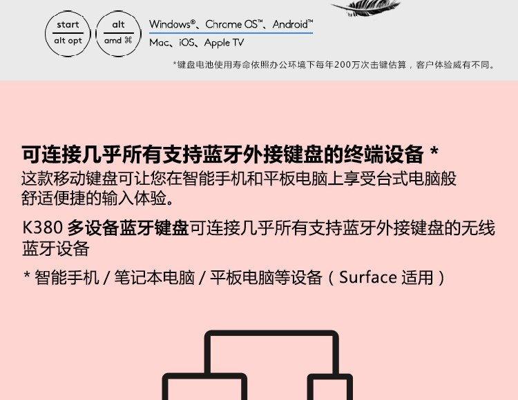 ロッジクK 380ワイヤレスブルートゥースキーボードマウスセットPebble玉石静音マウスK 480キーボードノートパソコンオフィスm 336マウスセットk 380ピンク+玉石ピンク