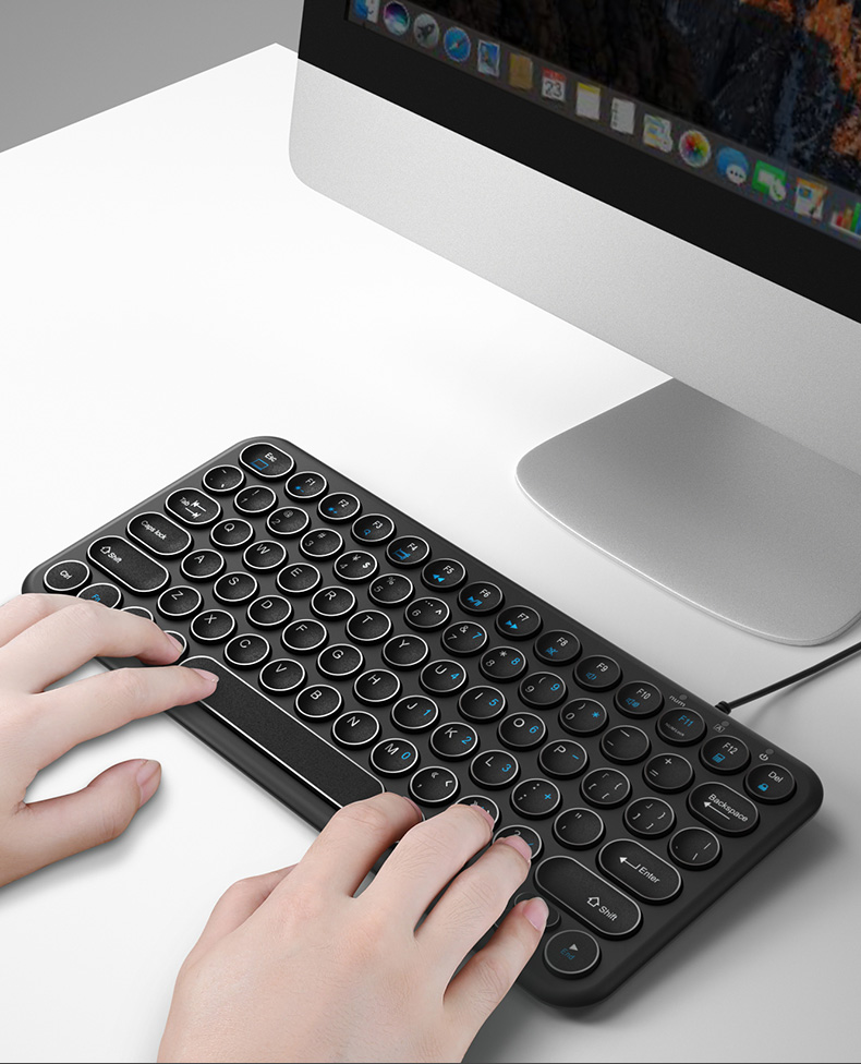 航世(B.O.W)HW 098 S-A静音円形凹キー薄型有線キーボードオフィスノート携帯USBキーボードピンク